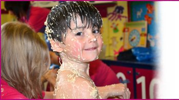 Children enjoy the wide variety of opportunities to 'get messy'. Whether this is outside in the water or in the baby room covered in cornflour paste and paint. Chances to explore and 'find out' abound in the nursery. Children are confident and unafraid to experiment and learn as a result. Children enjoy playing and exploring the wide range of stimulating play resources both indoors and outside.." OfSTED - August 2016