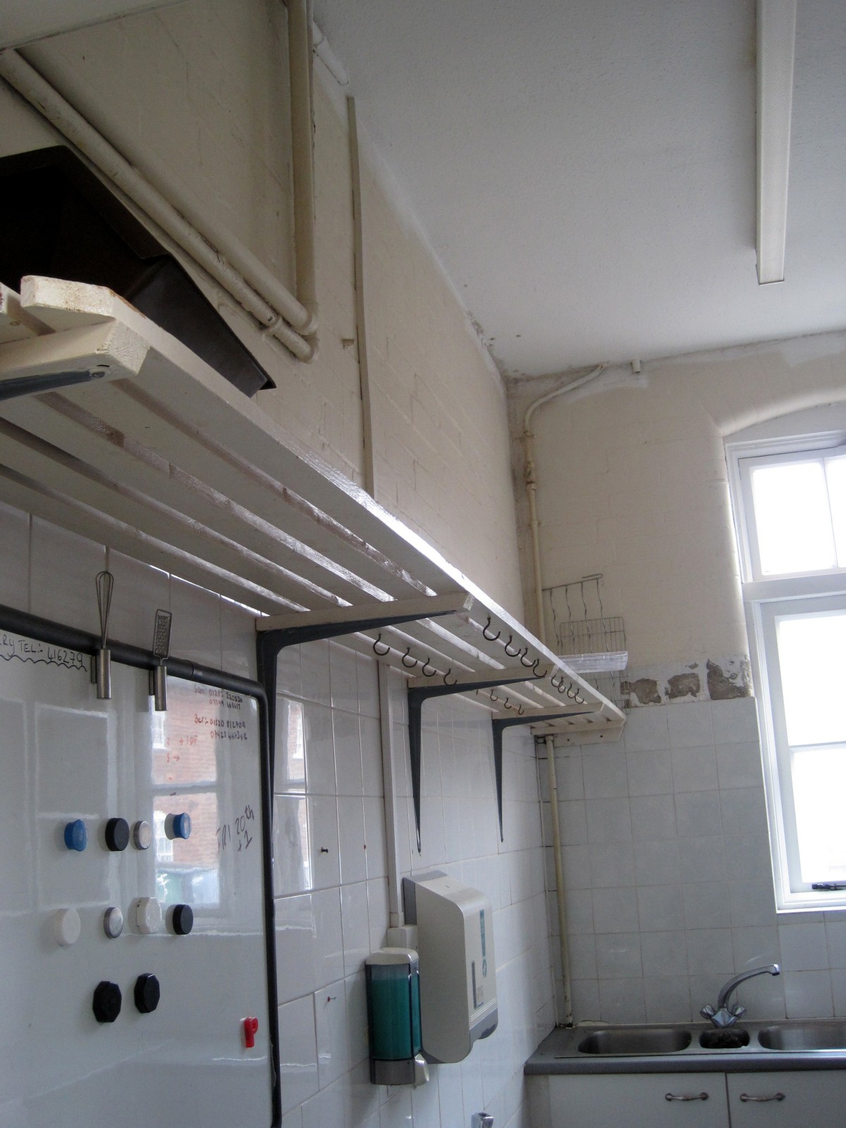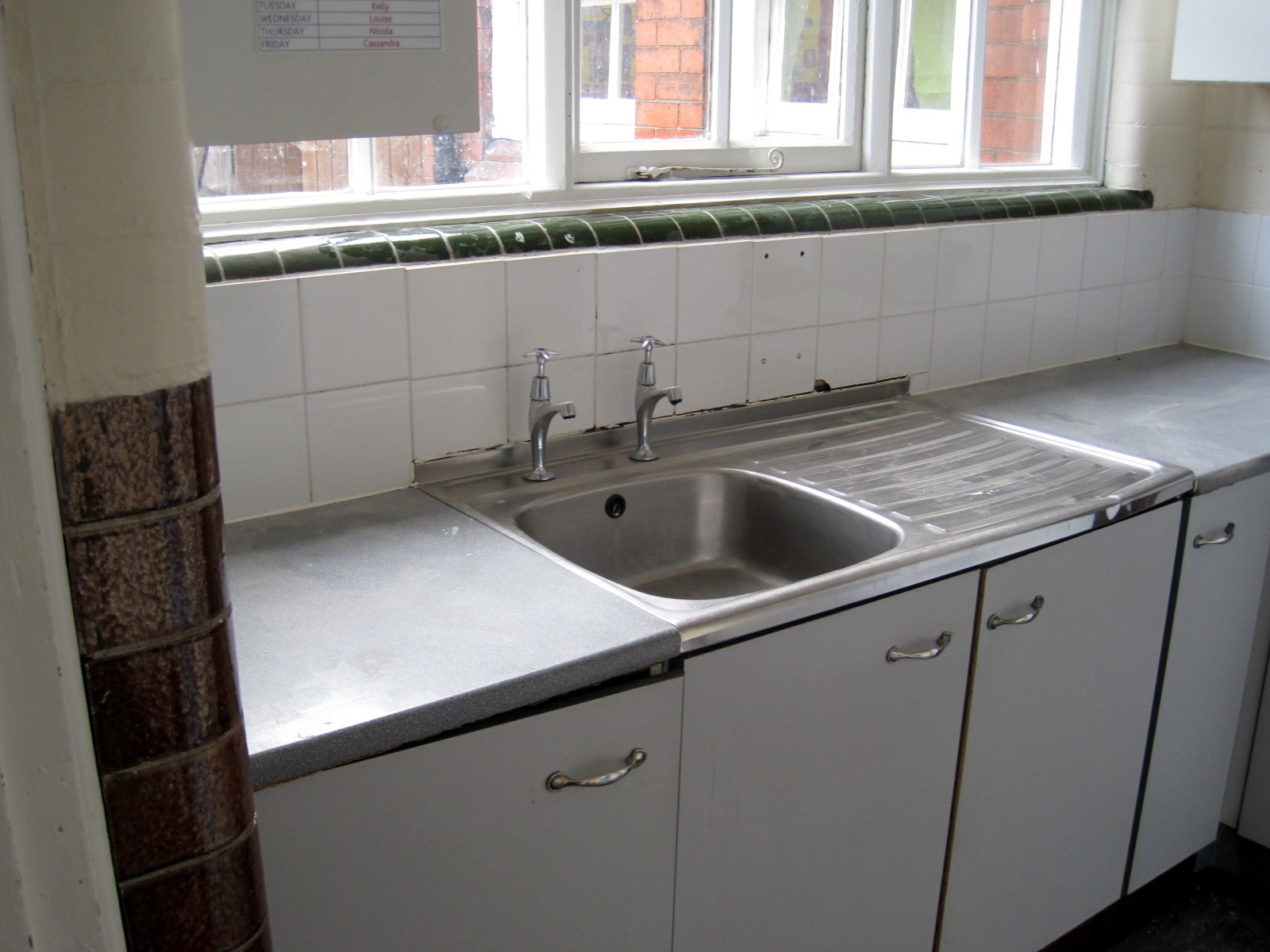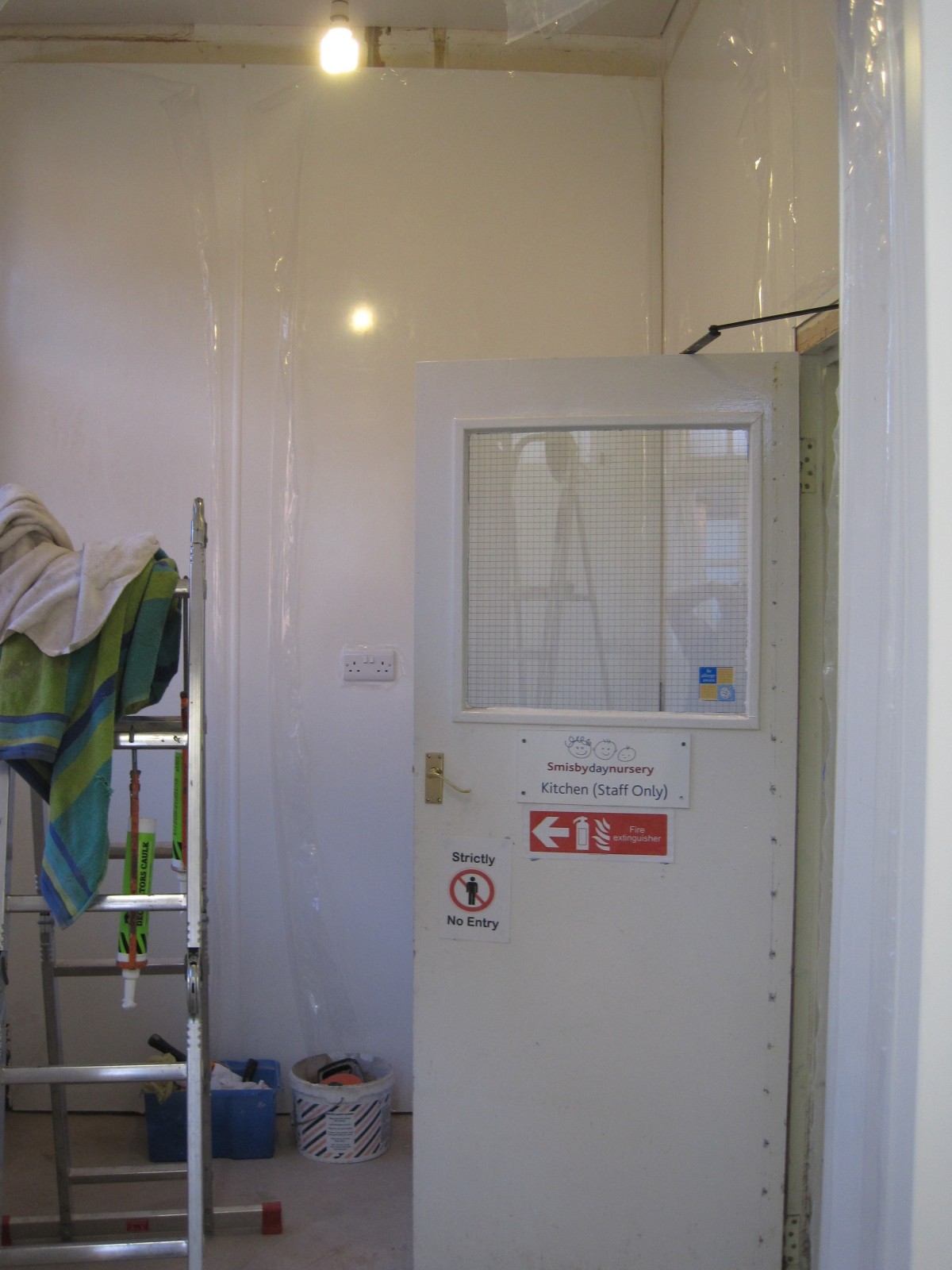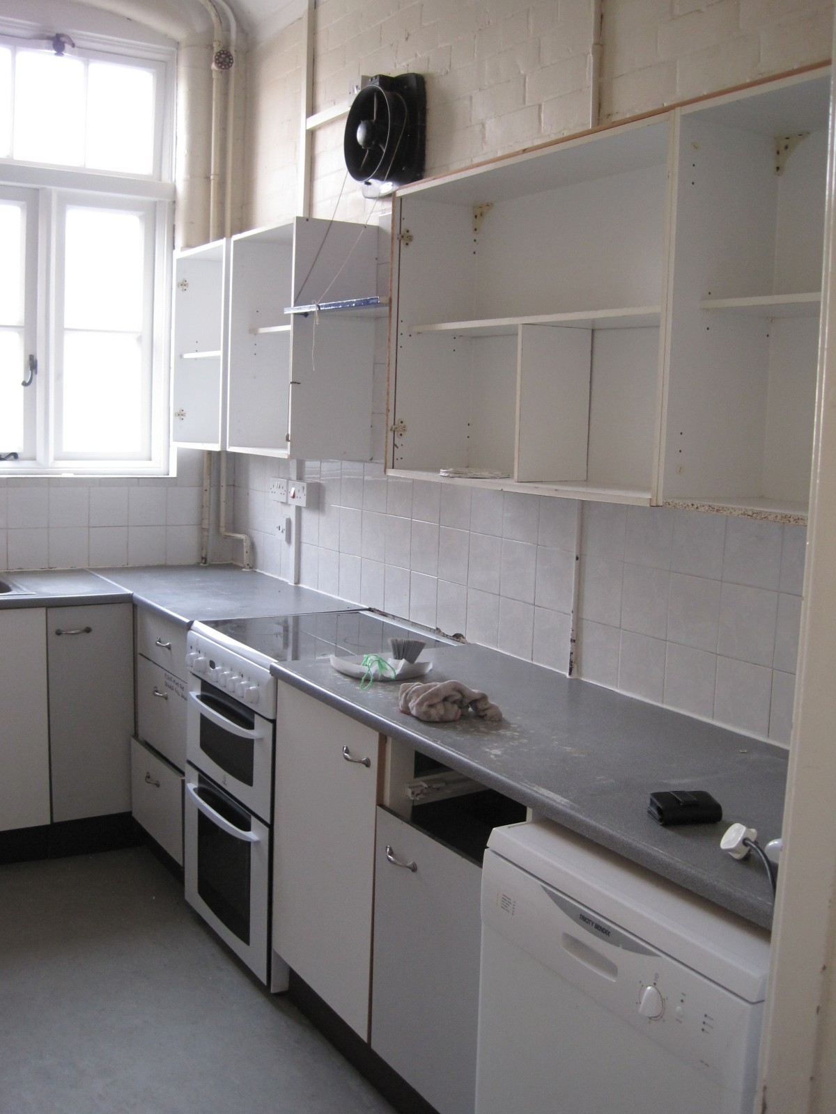 For the first six years we owned the Nursery years we knew that at some point we would have to refurbish the kitchen. Unfortunately many years of neglect meant that the woodblock floor was rotting under the vinyl, tiles were falling off the wall and old lead, (unused!), and cast iron pipes meant that everything had to be ripped out and started from scratch.
