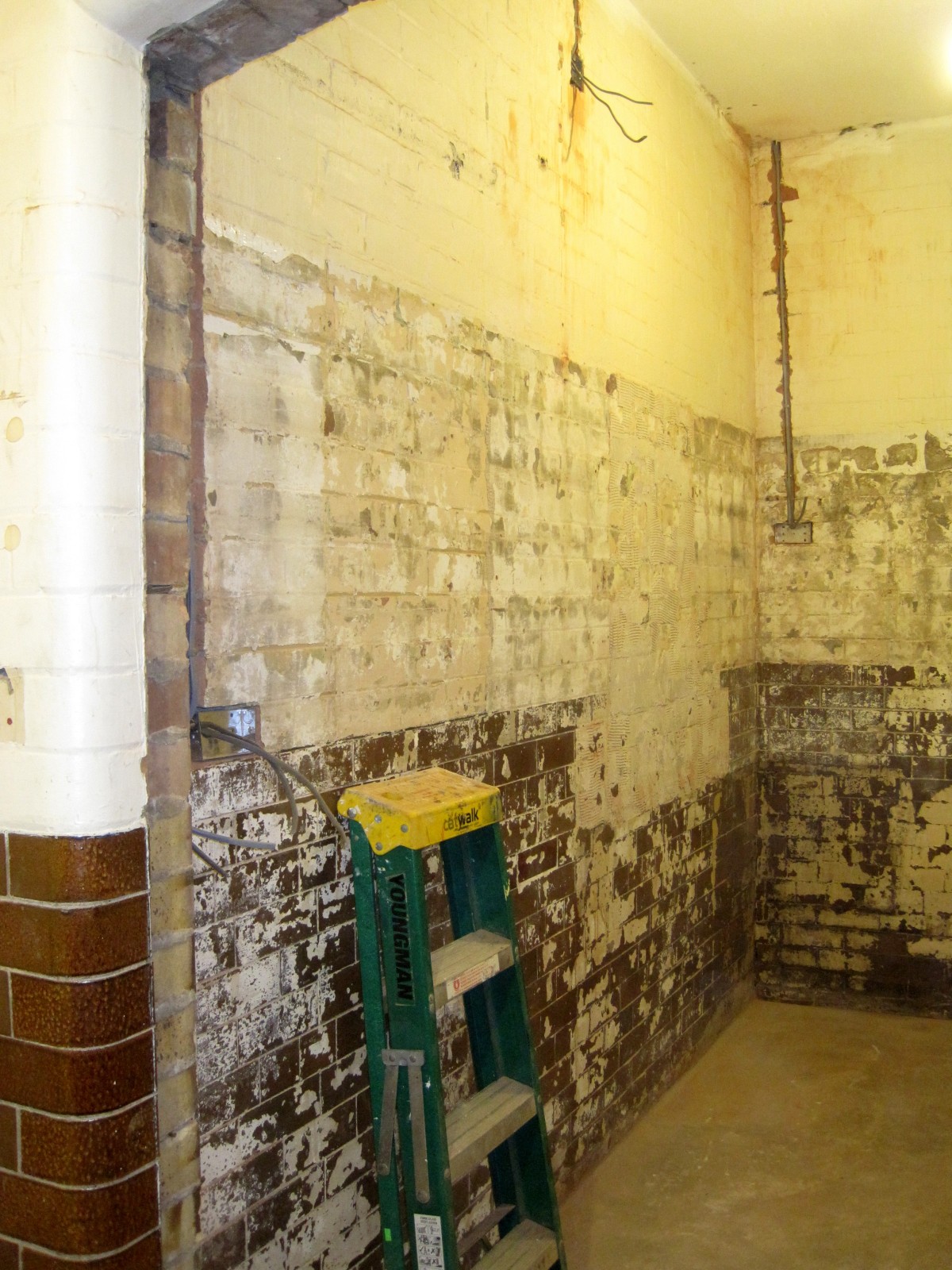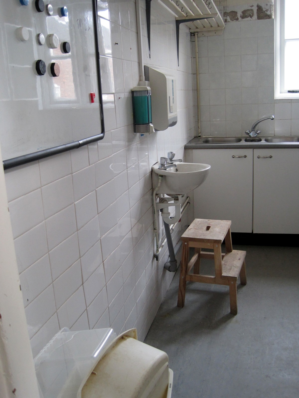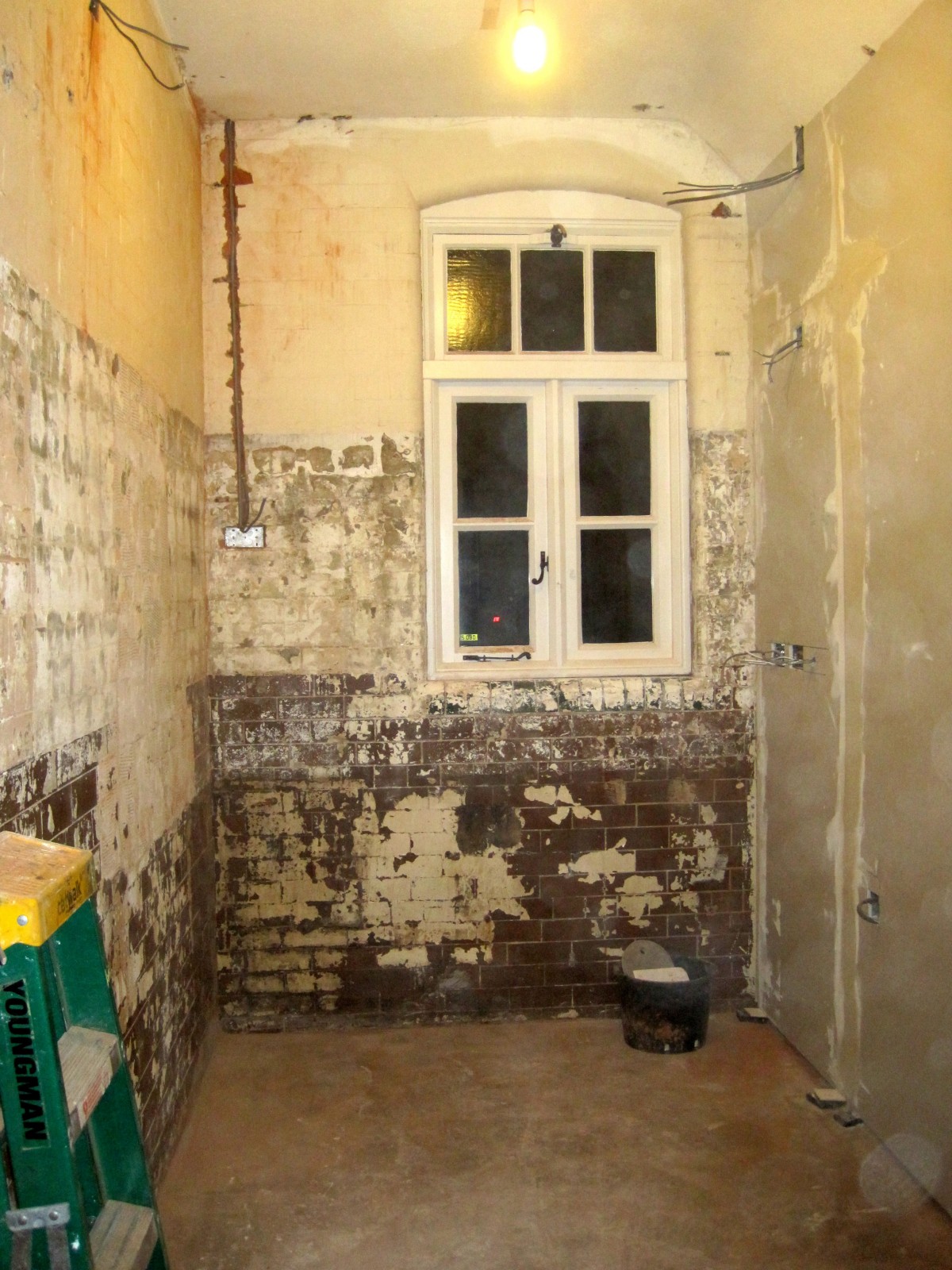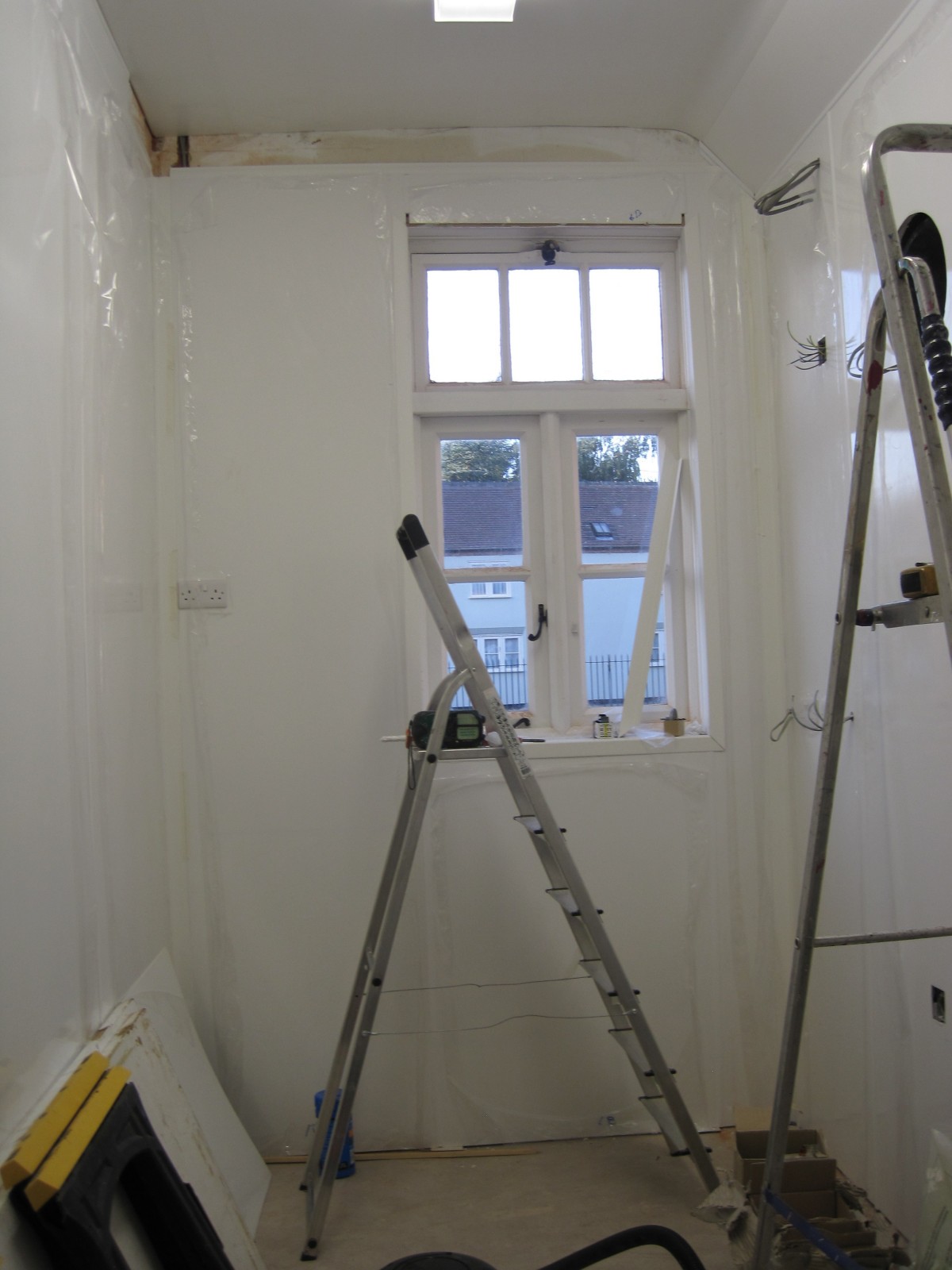 For the first six years we owned the Nursery years we knew that at some point we would have to refurbish the kitchen. Unfortunately many years of neglect meant that the woodblock floor was rotting under the vinyl, tiles were falling off the wall and old lead, (unused!), and cast iron pipes meant that everything had to be ripped out and started from scratch.